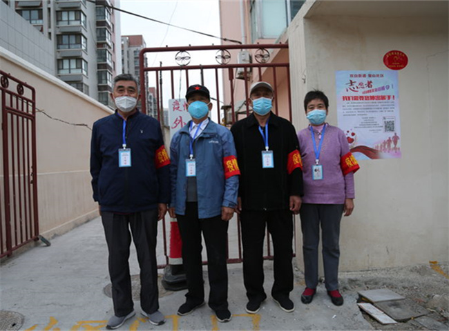明鑫制药厂宿舍是一个典型的老旧小区,随着本次战“疫”的逐渐深入,小区安保力量薄弱、社区人员紧缺等问题开始逐渐暴露。察看“双码”、登记信息、核酸检测、“双敲五扫”……小区管理的各个环节和流程都需要人手的把控,急需新的力量加入到疫情防控工作中。在党员志愿者高汝凯的号召下,5名志愿者申请加入到值守队伍中,他们的平均年龄在65岁以上,组成了一支独特的“银发”志愿者队伍,可千万别小瞧了这支队伍,他们筑起了小区的坚固防线。