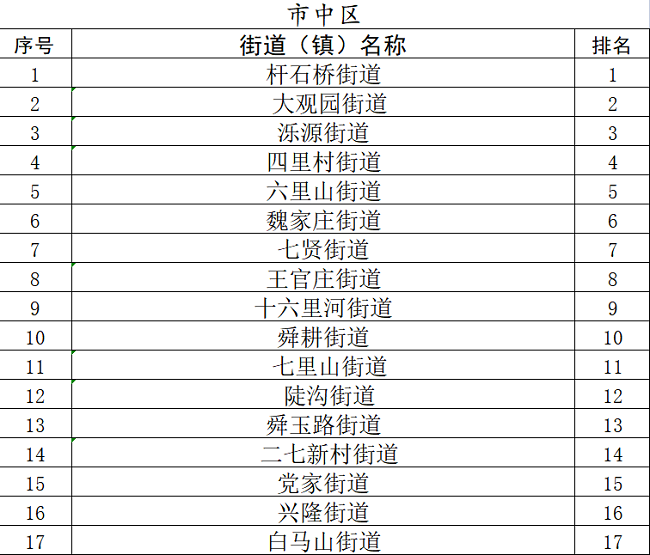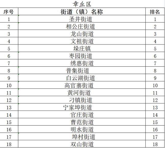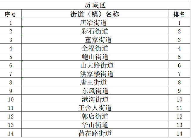 4月份,测评名次下降5名以上的街道(镇)有:市中区陡沟街道、槐荫区腊山街道、槐荫区五里沟街道、槐荫区道德街街道、历城区郭店街道、长清区归德街道、章丘区普集街道、章丘区黄河街道、章丘区刁镇街道、章丘区明水街道、章丘区埠村街道、章丘区双山街道、莱芜区茶业口镇、莱芜区鹏泉街道、商河县龙桑寺镇。