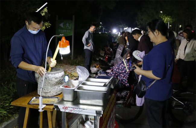 “早市、夜市,社区流动摊点疏导服务区的打造得到了摊主和居民的双重肯定,仅仅运行三四天,已然吸引了大量的人群前来摆摊、购物,过些日子我们再做一些灯带亮化,为老百姓照亮道路的同时,也提升一下城市颜值。”丁宝表示。(来源:大众日报)