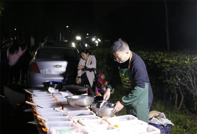 “我们社区由7个居民小区组成,人口密度大,街道和社区为了做好城市管理的工作,在辖区内选择了一条车流量不大的区间路作为我们社区流动摊点疏导的服务区,既做好了管理和服务,也守住了城市的‘烟火气’。”尚德社区党总支书记高麒滢介绍。