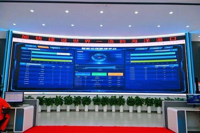 7月24日上午,记者走进山东港口烟台港矿石公司智控中心,正中间的大屏幕上,正实时显示着码头上各设备的运行状态,很多信息清晰地呈现在眼前。