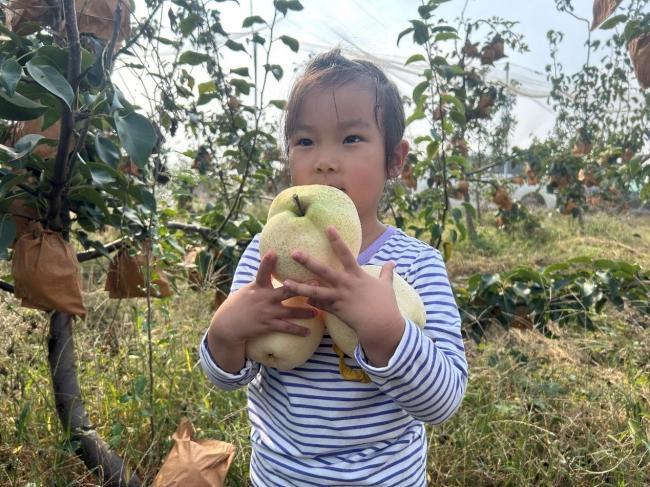 据悉,风口上山农酥梨是由山东农业大学陈学森教授选育的晚熟梨新品种,果实呈纺锤形或倒卵圆形,平均单果重可达400克,最大可达1500克。果皮为黄绿色,果肉白色,肉质细脆,含有很少的石细胞,汁液丰富,味道香甜。“作为高校,我们和企业进行深度合作,为果农提供技术支持,采用水肥一体化、病虫害防治、行间生草等现代化种植技术,进一步提高产量和效益,助力乡村振兴。”山东农业工程学院教师、山农酥梨科创团队成员王功帅说。