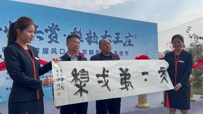 金秋十月,果满枝头。初秋的大王庄镇“丰”景如画,一颗颗个大饱满的山农酥梨挂满枝头。大家三五成群,穿梭在果树中,“咔嚓、咔嚓”声不绝于耳,在一声声清脆的声音中,大伙儿品尝着自己采摘的果实,脸上洋溢着幸福的笑容。“早就听说山农酥梨特别好吃,这个有机会过来品尝,果然特别脆甜、多汁,等会准备多采摘点带回家,跟家人分享一下。”游客亓文静说。