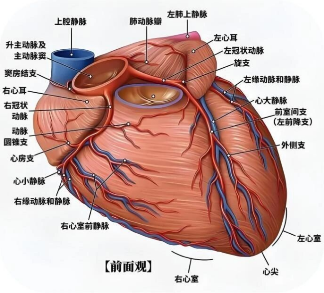 为了更好地理解病情,我们需要知道什么是“冠状动脉”。冠状动脉是从主动脉根部发出的重要血管,像一顶皇冠一样环绕在心脏表面,负责为心肌输送氧气和营养,是维持心脏跳动的“生命线”。正常情况下,左、右冠状动脉分别开口于主动脉根部所对应的正确位置,右冠状动脉起自右冠窦,左冠状动脉起自左冠窦,其分支行走于心脏表面,以保障心脏的血液供应。