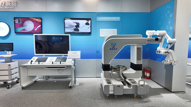 同为园区内医疗科技企业,山东奥朋智能科技有限公司也迎来了发展的关键阶段。这家专注于医疗机器人研发的企业刚刚实现了重大突破——其自主研发的智能机器人成功完成了一例完全无人干预的全自动介入手术动物实验,精准释放了一枚5毫米的肾动脉支架,实现了亚毫米级操作精度。