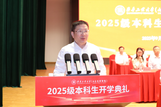 秋风为序启新程,奋楫扬帆书华章。9月19日上午,齐鲁工业大学(山东省科学院)2025级本科生开学典礼在长清校区举行。中国工程院院士王军成,校(院)领导班子成员吴衍涛、段培永、马文才、任民、房克乐、乔丙武、杨美红、许崇海、吉兴香、侯连涛出席典礼。杰出校友代表、家长代表、教师代表、在校生代表,校(院)相关部门、单位负责人,2025级本科生参加活动。典礼由副校(院)长乔丙武主持。
