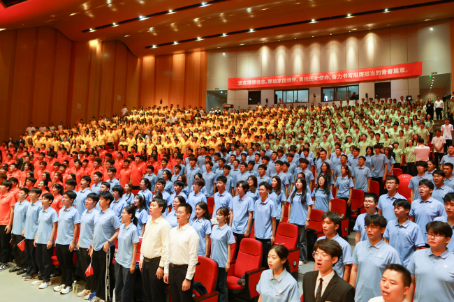 秋兰纫佩,英才咸集。典礼最后,2025级本科新生集体唱响校歌《追梦路上》。伴随着嘹亮的歌声,校(院)2025级本科生开学典礼圆满落幕。