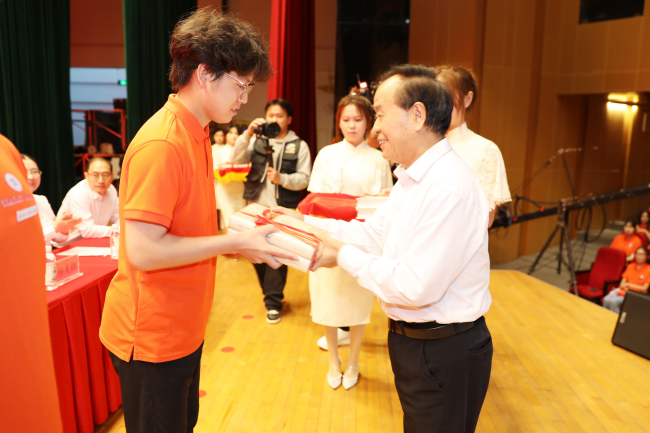 在校生代表、控制学部电子信息工程2023级本科生郭恩宇分享了自己的成长故事与竞赛经历,勉励学弟学妹们胸怀家国、勇于探索,在不断拼搏中淬炼本领,在心怀感恩中汲取力量,用实际行动书写无愧于时代的青春华章。