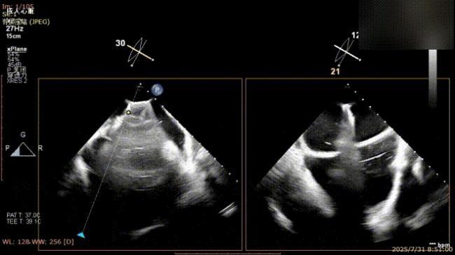 近日,山东第一医科大学附属省立医院(山东省立医院)心脏大血管外科王安彪教授团队,在中国医学科学院阜外医院段福建教授与空军军医大学西京医院刘洋教授指导下,成功为一例二尖瓣重度反流4+伴后叶脱垂、后叶部分腱索断裂的患者实施全超声引导下经皮二尖瓣钳夹术(TEER),实现了微创、精准治疗。患者术后恢复良好,已康复出院。