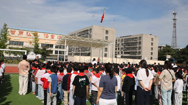 驩城镇中心小学组织火灾自救疏散演练,增强应急避险能力。演练后,全校聆听“九一八”主题宣讲并肃立默哀,各班召开“勿忘国耻·珍爱生命”主题班会,结合历史与安全教育,激发爱国情怀。驩城镇第二中心小学则举行“勿忘国耻,振兴中华”签名活动,学生集体宣誓、高呼口号,并在条幅上郑重签名。活动将安全教育与爱国主义教育深度融合,厚植家国情怀。