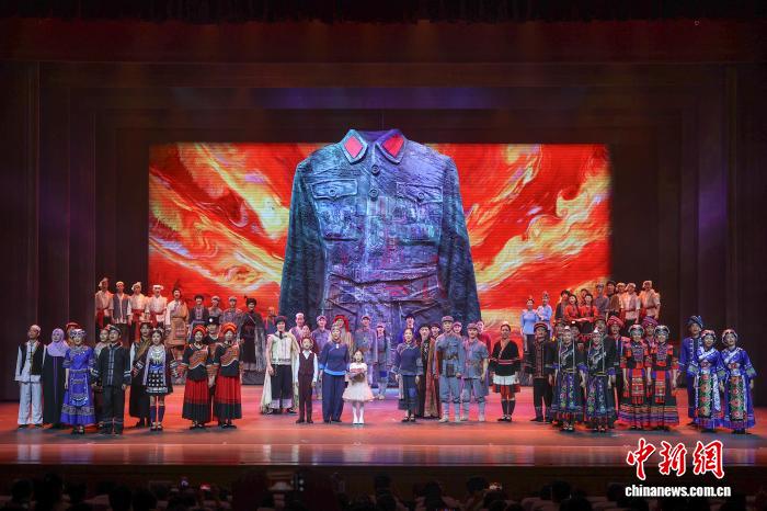 图为9月23日,原创民族歌舞剧《五彩红军衣》首演现场。刘力鑫摄