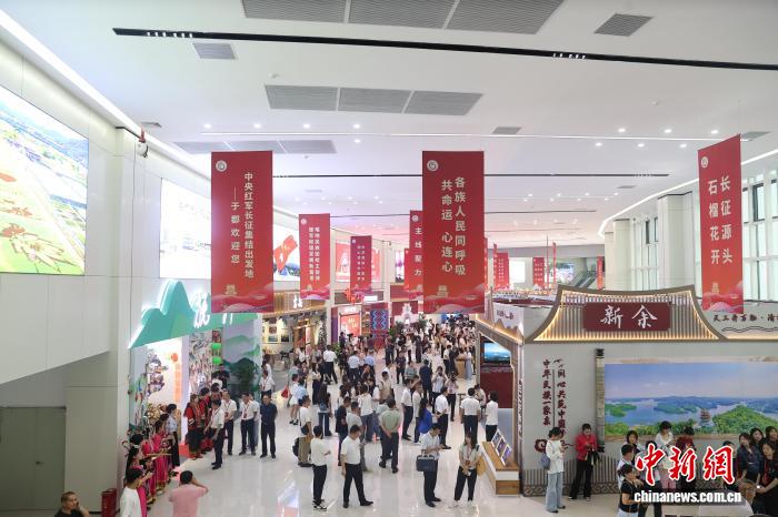 图为9月23日,江西赣州于都县,民族题材书画摄影作品展和铸牢中华民族共同体意识图片展现场。刘力鑫摄