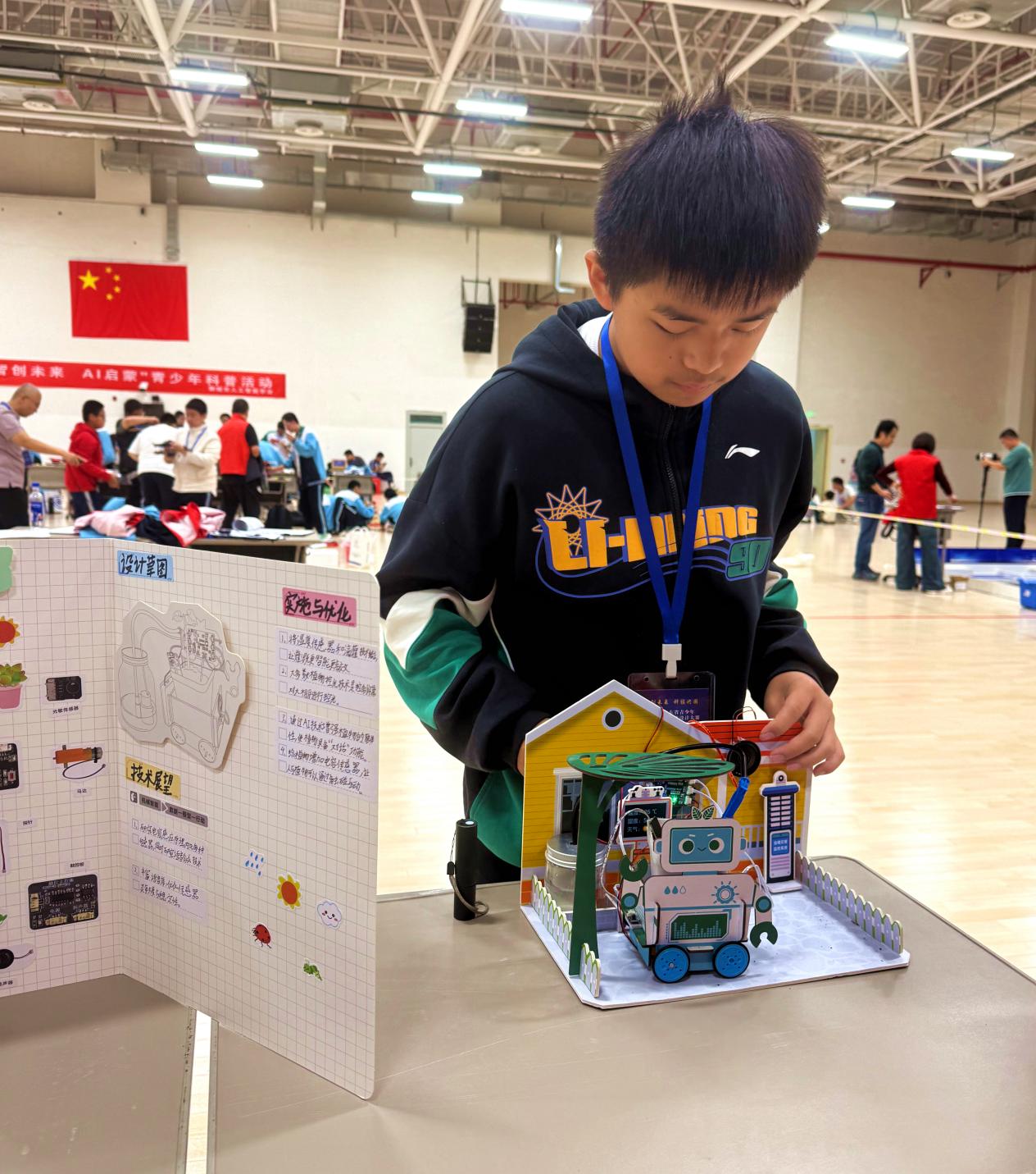 比赛现场,参赛选手们展现出令人惊叹的想象力与创造力。他们凭借扎实的编程基础与灵活的创新思维,在结构设计与程序编写中不断突破,开发出循迹小车、智能红绿灯等一系列兼具趣味性与实用性的作品。这些作品不仅展现了青少年对人工智能技术的深刻理解与灵活运用,更传递出他们用科技解决实际问题、服务生活的美好愿景,赢得了评委团的一致好评。