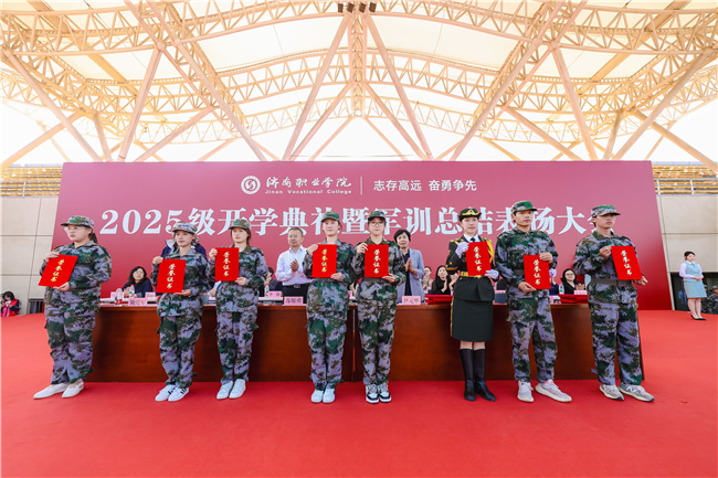 2025级新生军训,在学院党委的亲切关怀与领导下,党委学生工作部的精心组织与实施下,相关职能部门及各系部的通力协作与支持下,顺利完成了各项既定任务。2025级开学典礼暨军训总结表扬大会,不仅是军训成果的集中检阅,更是全体新同学大学生涯的郑重开启。典礼发布的酢浆草精神,为学生的成长成才注入了强大动力,它将指引每位济职学子清晰发展方向,做到心中有梦、眼里有光、手中有技、前行有能,激励他们在未来岗位上扎根奉献、技能报国。