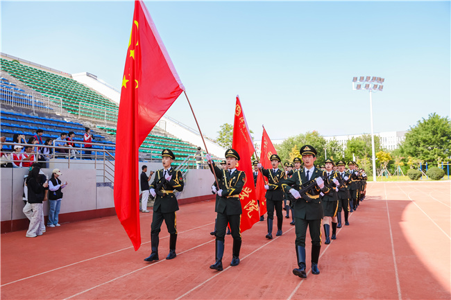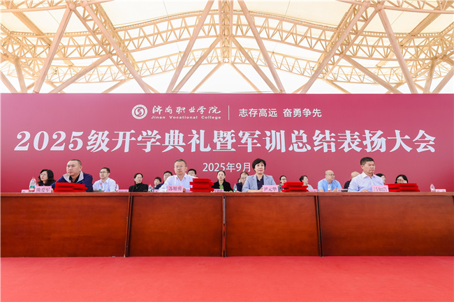 青春怀壮志,金秋启新程。9月24日,济南职业学院2025级开学典礼暨军训总结表扬大会在彩石校区西操场举行。学院党委书记苏旭勇,院长尹元华,纪委书记熊爱军,副院长吕如浩,相关职能部门负责人、各系部主任、党总支书记、学办主任、团总支书记、新生辅导员、承训教官以及2025级全体新生参加典礼。典礼由吕如浩主持。