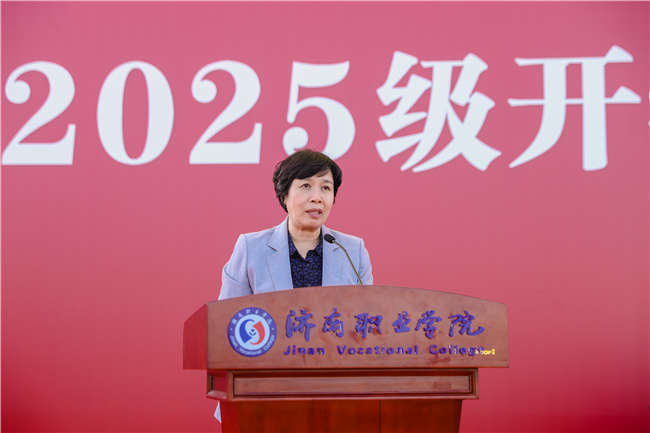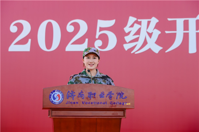 2025级计算机系李晓曼作为新生代表发言。她真情回顾了收到录取通知书的喜悦与初入校园的温暖体验,感谢了师长、教官的辛勤付出与学长学姐的无私帮助,分享了军训中的收获与成长,并倡导全体新生牢记“厚德博学、强能善技”的校训,胸怀“技能成才、强国有我”的志向,向下扎根夯实基础,向上生长突破自我,在济职沃土上书写美好未来。