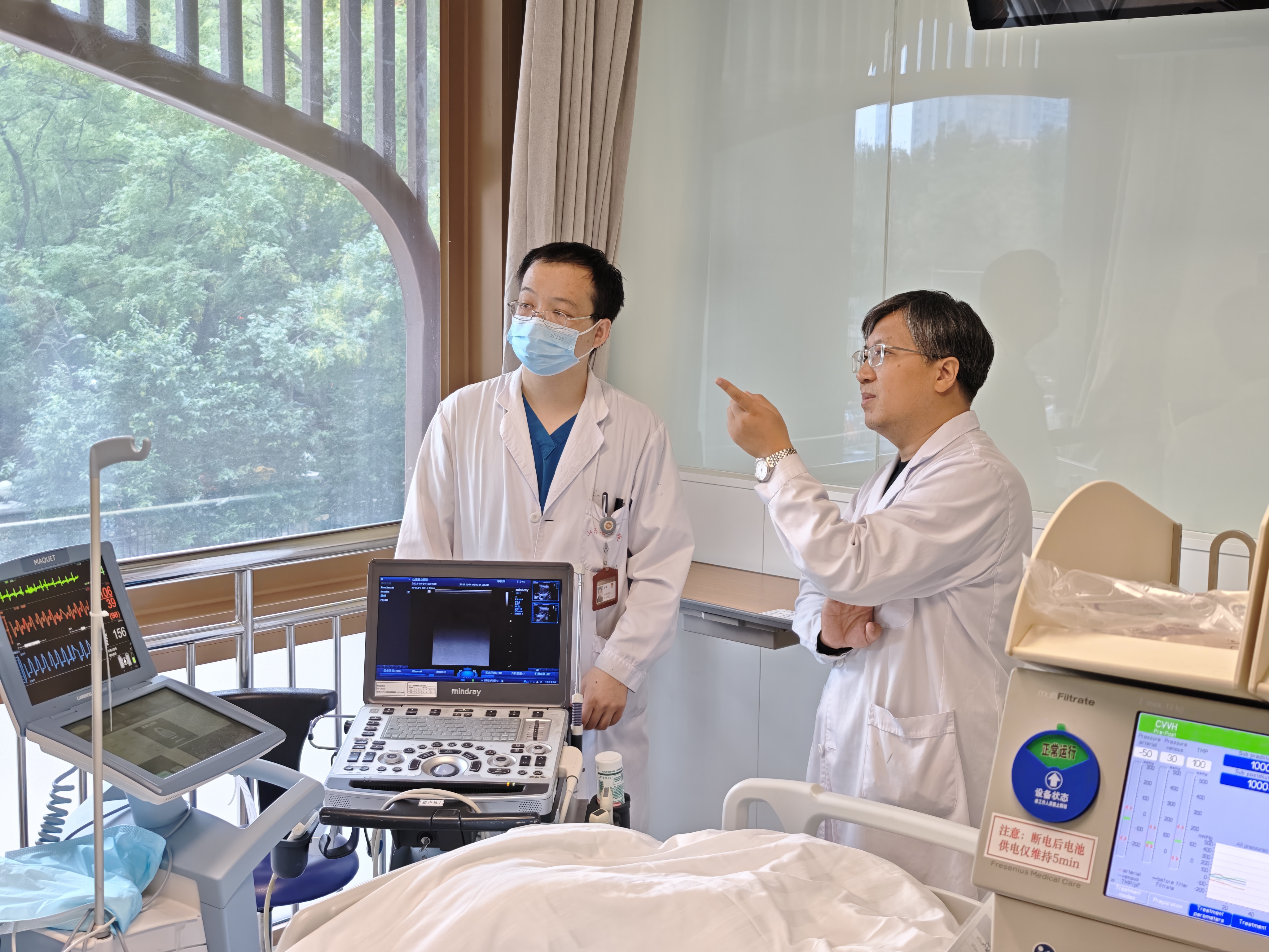 这样的协作贯穿于ICU的每一天。76岁的患者因股骨颈骨折入院治疗,术后被转入重症医学科中心院区二病区。监护过程中,患者心跳、呼吸骤停。经诊断系突发心梗。随后,医疗团队紧急为其实施ECMO治疗。经过一段时间的治疗后,患者心脏功能有所恢复。“前两天,我们已经成功将ECMO撤机,换上了创伤更小的体外球囊反搏(IABP)辅助循环。”张继承介绍。从ECMO到IABP,不仅是治疗方案的降级,更是团队携手将患者从死亡深渊一步步拉回生命轨道的有力见证。