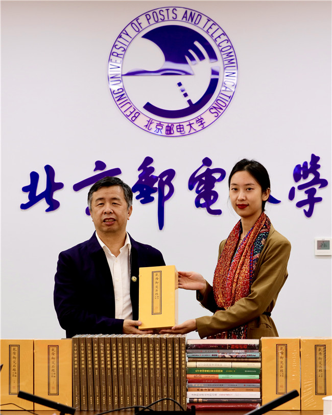 另外,孔子博物馆同北京邮电大学馆校战略合作签约仪式在北邮举行。仪式上,双方共同签署了馆校战略合作协议,标志着两家单位在文化传承与创新领域的合作迈入了新的阶段。同时,孔子博物馆还向北京邮电大学赠送了多部书籍,包括《乾隆御定石经》《孔子圣迹图汇编》《孔子博物馆藏珍贵古籍图鉴》等。(图/文:侯新建)