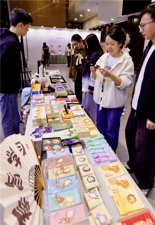 孔子博物馆的文创产品集中亮相,巧妙融合儒家文化元素与现代设计理念,展现了传统文化创意赋能现代生活的无限可能。“孔博美食”让师生们在品尝美味的同时,体会孔府“食礼和德”的文化内涵。“孔博织造”展区展示了依据孔博馆藏明代服饰复原的漳缎与云锦华服,诠释了“衣冠载道”的礼仪美学与织造技艺。