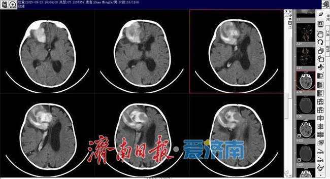 随后,小明被紧急转诊至山东大学附属儿童医院神经外科。神经外科主任王广宇带领团队立即为患儿开展进一步检查,结果显示小明脑内不仅有1处巨大血肿,还同时存在2处大型动脉瘤样突起——这一复杂病情正是导致其颅内血肿的关键原因。