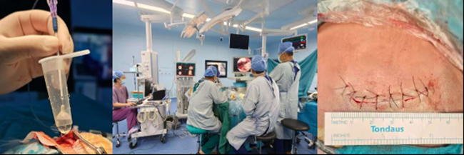 针对小明的特殊病情,王广宇主任团队迅速展开病例讨论,最终确定手术方案:采用复合手术模式,先行神经介入弹簧圈联合Onyx胶栓塞动脉瘤,同期实施颅内血肿清除术。为最大程度降低手术创伤(婴幼儿颅内空间狭小、组织脆弱),团队特别加入神经导航引导穿刺技术,配合内镜下血肿清除操作,在精准定位的同时减少对脑组织的损伤。