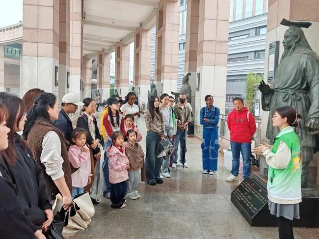 在泉城广场文化长廊,参与者在志愿者中英双语的讲解中,逐一瞻仰了12位山东历史名人铜像。从至圣先师孔子到名将辛弃疾,从圣君大舜到词坛女杰李清照,名人们的生平与事迹跨越语言障碍,生动呈现在国际友人面前。这场以双语导览贯穿的“名士之旅”,使外国友人深刻感受到齐鲁文化的深厚底蕴与济南“名士之乡”的独特魅力。