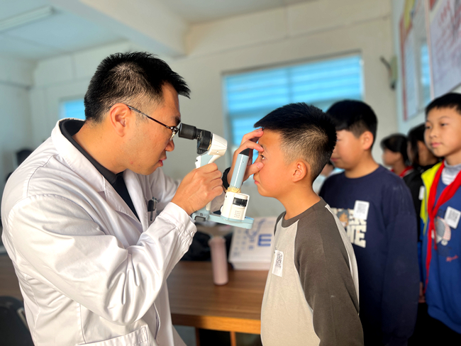 作为此次活动的核心执行力量,聊城九三学社社员、聊城华厦眼科医院业务院长张强带领医院专业眼科团队,带着精密的检查设备,为同学们开展了全方位的眼部检查。筛查项目涵盖视力检测、眼表前节检查、屈光状态评估、眼位检查及眼底检查等,全面排查青少年近视、远视、散光、斜视等常见眼部问题,为每一名学生建立详细的视力健康档案,精准掌握孩子们的眼部健康状况。