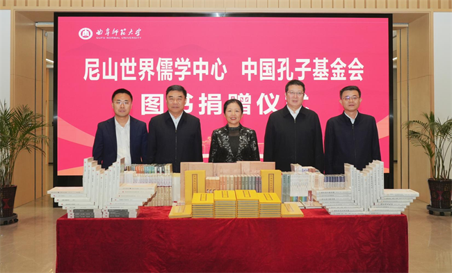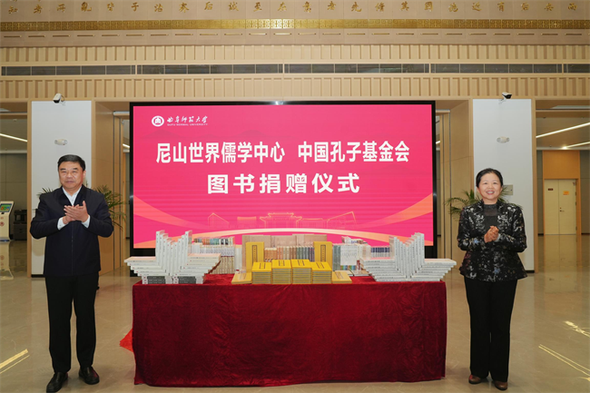 10月21日,在曲阜师范大学建校70周年之际,尼山世界儒学中心、中国孔子基金会图书捐赠仪式在曲阜师范大学举行。尼山世界儒学中心(中国孔子基金会秘书处)党委书记、副主任、中国孔子基金会副理事长、秘书长国承彦,曲阜师范大学党委书记邢光出席并致辞。