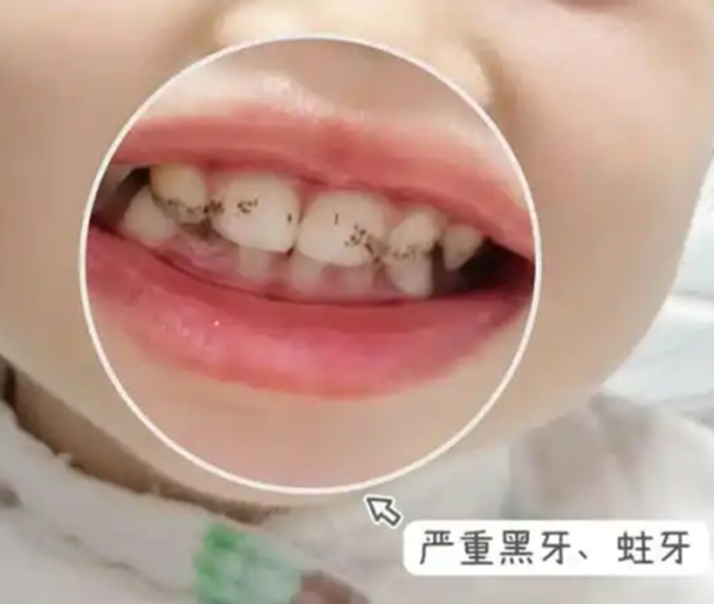 乳牙龋齿会导致牙洞形成,这些龋洞里容易积聚食物残渣和细菌,使得宝宝6岁换牙时新生的恒牙也发生龋齿。