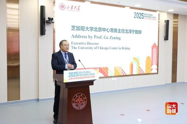 友好高校代表、芝加哥大学北京中心常务主任戈泽宁高度评价了山东大学在推动国际教育合作中发挥的桥梁作用。他表示,芝加哥大学与山东大学有着良好的合作基础,期待双方进一步拓展合作空间,在人才培养、科研创新、学术交流等领域实现更深层次的协同发展。