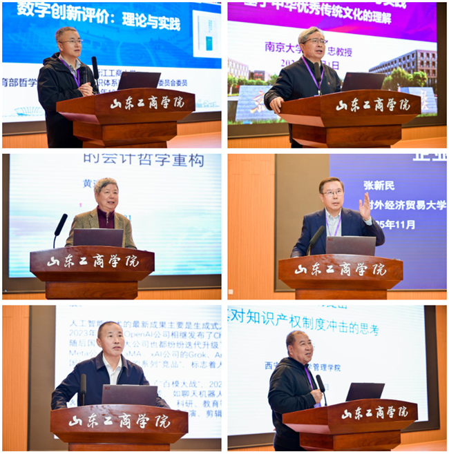 浙江工商大学党委副书记、校长王永贵教授,南京大学原党委常务副书记杨忠教授,中国企业管理研究会原会长、中国社会科学院工业经济研究所黄速建研究员,对外经济贸易大学原党委常委、副校长张新民教授,东北财经大学党委副书记、校长汪旭晖教授,北京师范大学经济与工商管理学院院长戚聿东教授,西安交通大学管理学院高山行教授分别以《数字化创新:评价与应对》《中国式创新——基因、理念与探索》《面向智能化工业革命的会计哲学反思》《财报分析——从比率计算到企业实质的认知》《数据要素促进新质生产力发展》《人工智能发展技术派与治理派的分歧及我国战略抉择》《创新垄断收益走向的思考——创新生态租的提出》为题作报告。