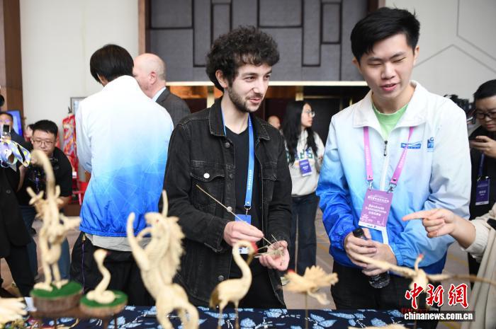 长沙棕叶编吸引参加论坛的法国友人前来参观。中新网记者杨华峰摄