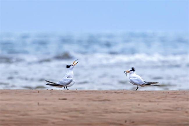 “今年中华凤头燕鸥的数量较去年同期增加了20多只,这离不开日常的环境整治和环保宣传,更得益于全社会保护意识的持续提升。”刘家湾赶海园景区负责人苗中杰介绍,为守护中华凤头燕鸥栖息环境,景区即使在旅游旺季也将游客赶海范围控制在1.5公里之内,预留专属安全空间;每日常态化清理滩涂垃圾,通过广播循环倡导环保理念;联动民宿主理人、环保工作者及摄影爱好者组成“燕鸥保护队”,形成专业守护与全民参与相结合的保护模式。络绎不绝的游客与安然栖息的中华凤头燕鸥,在此实现了和谐共处。