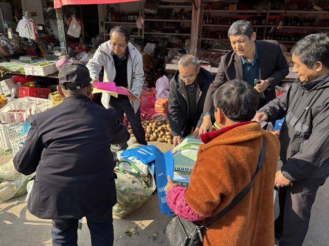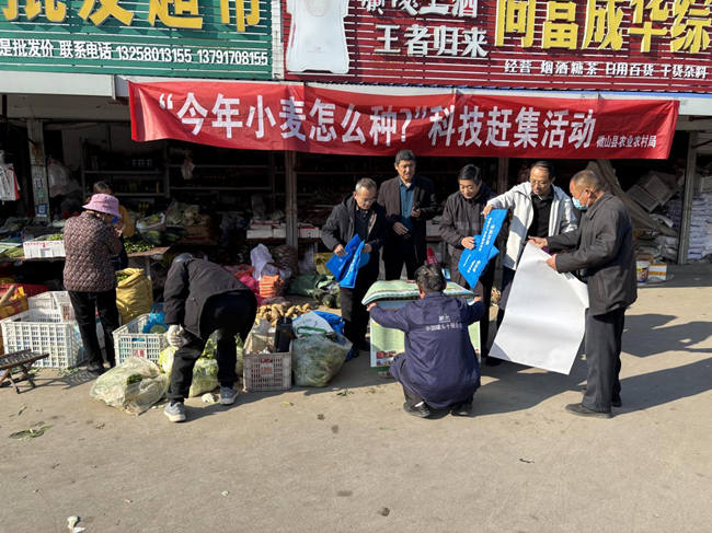 为精准助力秋种生产、把实用农技送到农民心坎上,11月4日,济宁市微山县农业农村局科教科、农产品质量监管科联合驩城镇农技站,走进热闹的驩城大集,一场接地气的“科技赶集”活动热闹开场。农技专家们化身“摆摊人”,带着满满的“农技干货”,将专业服务送到了群众家门口。