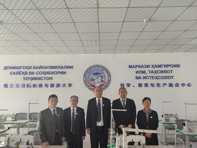 代表团访问塔吉克国际旅游与创业大学,实地参观该校教室、餐厅、校办工厂及创业孵化中心,受到师生的热烈欢迎。与副校长贾博罗夫・法图洛(JABBOROV FATHULLO)洽谈教师互访、学生交换、实训基地共建等事宜,搭建海外深造平台。