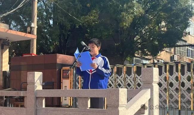 随后,学生代表亓子乾同学进行国旗下演讲。他以《认真踏实,备战期中》为题,结合自身学习感悟,分享备考方法:课堂上紧跟老师复习节奏,将模糊知识点逐一“清零”;课后独立完成作业、及时复习,通过整理错题本让每道错题成为进步阶梯;同时合理规划时间,关注薄弱科目。他提到,期中考试不仅是知识的检验,更是证明自我的机会,鼓励同学们怀揣对理想成绩的渴望、对父母师长的感恩,以专注态度攻克学习中的枯燥与挑战,在考场上书写精彩。