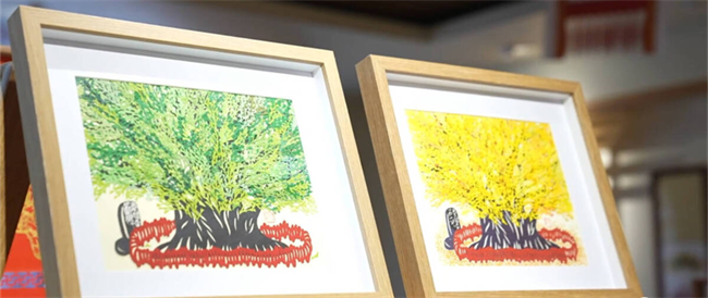 文创店工作人员于福星分享道:“我们这关于银杏的主要文创有冰箱贴、书签、手账本等。其中最具有特色也是最受欢迎的就是这一幅银杏树的剪纸作品。它融入了非遗的刀刻技法,每一组叶片都是纯手工刻制的。并且渲染出了不同层次的丰富的黄色,将古树的生命力与丰富的色彩跃然纸上,栩栩如生。我们也希望通过非遗让更多的人了解到银杏树,了解到我们这里,喜欢这里。”