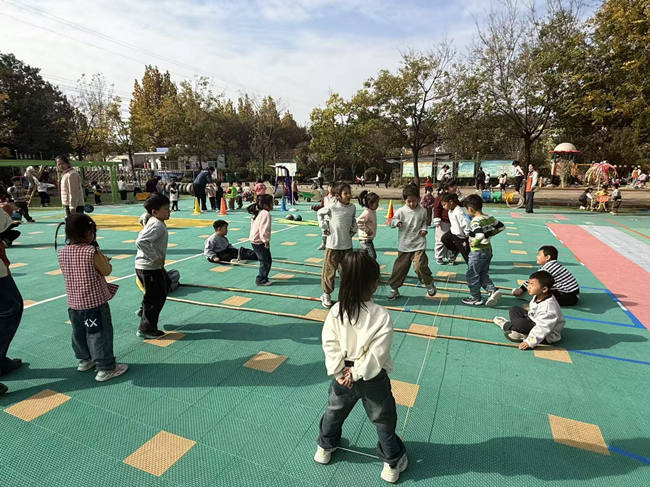 活动中,在中心幼儿园杨毅的带领下,实地察看了园区户外游戏环境创设。从充满趣味的体能挑战区、创意十足的自然探索区,到兼具操作性与教育性的建构游戏区,错落有致的活动空间、丰富多元的游戏材料,以及孩子们在活动中展现出的自主探究、合作分享精神,给参观人员留下了深刻印象。大家不时驻足观察,用镜头记录下精彩瞬间,围绕活动设计、材料投放、安全保障等问题与中心幼儿园教师展开即时交流。