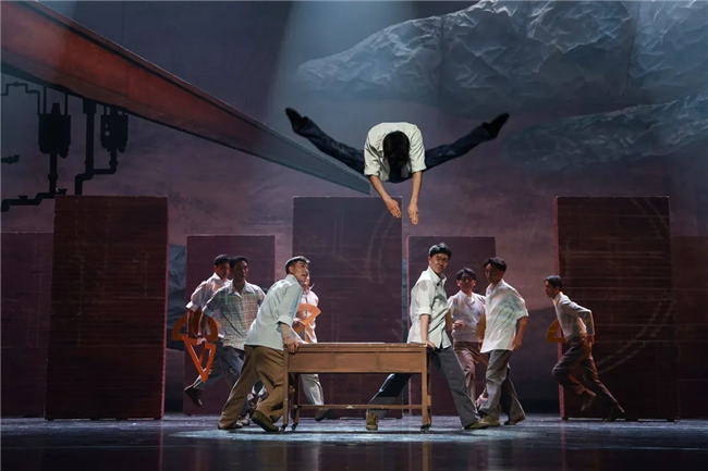 音乐创作上,该剧更是巧夺天工:悠扬婉转的草原民歌与富有时代印记的激昂旋律交相辉映,民族乐器的独特韵味与现代配乐的恢弘气势完美融合,将草原儿女的柔情与热血、科研工作者的坚韧与坚守渲染得淋漓尽致,为剧情推进注入了强劲的情感张力。舞台设计则采用纪实文学风格与纪录片艺术形式相结合的手法,活动围墙的灵活运用、虚实交织的场景转换,搭配细腻灵动的灯光舞美,既生动再现了金银滩草原“天苍苍、野茫茫”的辽阔壮美,又真实还原了科研基地从荒芜到崛起的建设图景。其中“电影院寻人”一幕尤为戳心:罗丁与索朗在熙攘人群中遥遥相望,却被流动的人潮与阻隔的围墙生生分离,简单的舞蹈动作背后,是特殊年代里普通人的遗憾与坚守,是个人命运与国家命运的深刻交织,让现场观众无不动容。
