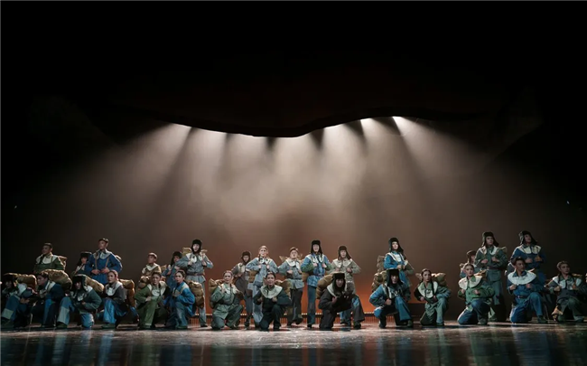 一部剧作,十年深耕。《金银滩・金银花开》的剧本打磨历时近十载,创作团队始终坚守“扎根历史、还原真实”的初心,深度挖掘海北州本土红色资源,以我国第一个核武器研制基地(221厂)的建设历程为蓝本,首次将金银滩草原牧民大搬迁的壮阔史诗搬上舞台。时间回溯至1958年,为支援国家核事业建设,金银滩草原上1279户、6700余名农牧民毅然响应号召,仅用10天时间便拆下世代居住的帐篷,赶着15万头牲畜,告别了生养繁衍的故土。迁徙途中,严寒侵袭、损失相伴,但牧民们始终怀揣“国家好,我们才会好”的赤诚信念,不仅毫无怨言,更主动留下大批牛羊支援基地建设,后续更有三百余名牧工投身基地后勤保障与外围掩护工作,用朴素的行动诠释着“舍小家为大家”的家国情怀。