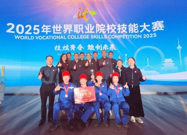 11月14日,2025年世界职业院校技能大赛冠军总决赛在天津落下帷幕,枣庄职业学院代表队作为山东省唯一晋级决赛的队伍,凭借参赛项目《数智驱动智慧生产赋能区域高端化工产业发展》,在决赛六强中脱颖而出,荣获总决赛亚军!