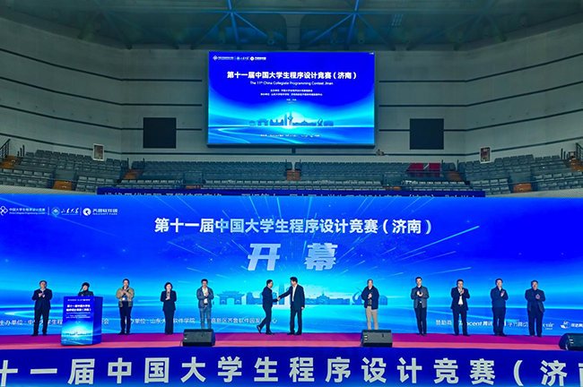 十一月的泉城济南,因一场青春激荡的编程盛宴而格外火热。11月15日至16日,第十一届中国大学生程序设计竞赛(济南)(简称“CCPC”)在山东大学中心校区举行。来自北京大学、清华大学、南京航空航天大学等全国178所院校及部分中学和企业的320支队伍、近千名师生齐聚一堂,展开智慧与创新的较量。这场赛事不仅展现了中国大学生卓越的专业素养,也成为观察城市人才战略的重要窗口。山东大学党委常委、副校长曹现强,济南高新区党工委委员、国家信息通信国际创新园服务中心党组副书记、常务副主任陈安彪出席开幕式并致辞。