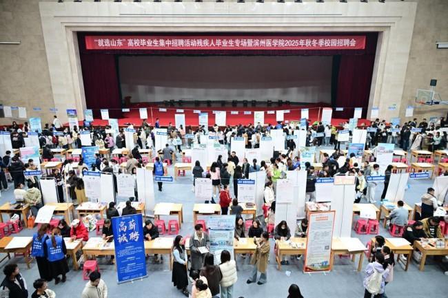 11月15日,学校在大学生活动中心举办“就选山东”高校毕业生集中招聘活动残疾人毕业生专场暨2025年秋冬季校园招聘会。校党委委员、副院长王术光,烟台市人力资源和社会保障局负责同志到现场指导。112家用人单位齐聚滨医,提供3600余个就业岗位。4000余名毕业生和在校生参会,1000余人次达成初步就业意向。