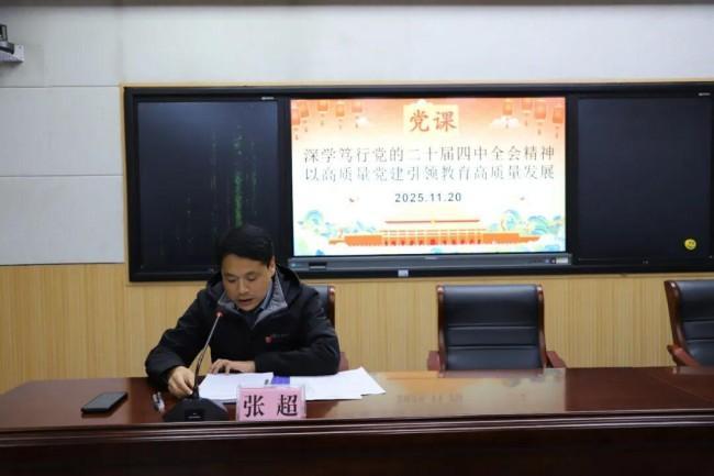 党课伊始,两位同志结合全会召开的背景与意义开宗明义:“党的二十届四中全会是在‘两个一百年’奋斗目标历史交汇点、向第二个百年奋斗目标进军的关键阶段召开的重要会议。全会将教育置于现代化建设优先位置,为我们锚定教育强国目标、推进基础教育高质量发展指明了方向。”