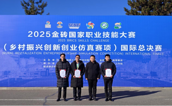 近日,2025年金砖国家职业技能大赛“乡村振兴创新创业仿真”赛项国际总决赛在鄂尔多斯生态环境职业学院成功举办。由枣庄职业学院新能源与汽车工程系教师李明聪、经济与信息技术系教师李琦、新能源与汽车工程系学生陆逸豪组成的参赛团队,凭借扎实的专业功底与出色的现场表现,荣获总决赛一等奖。