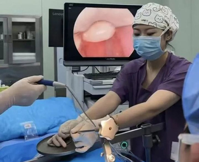 接诊医生详细询问了宝宝的病史,并进行了全面的体格检查,发现宝宝呼吸时存在“三凹征”。考虑到喉部结构异常的可能性,医生为宝宝安排了喉部超声检查。检查结果令人意外,宝宝竟患有舌根囊肿。这种囊肿在喉部占据了一定空间,影响了气道的通畅,导致宝宝出现喉鸣和呼吸困难的症状。
