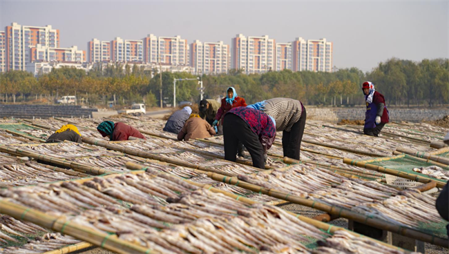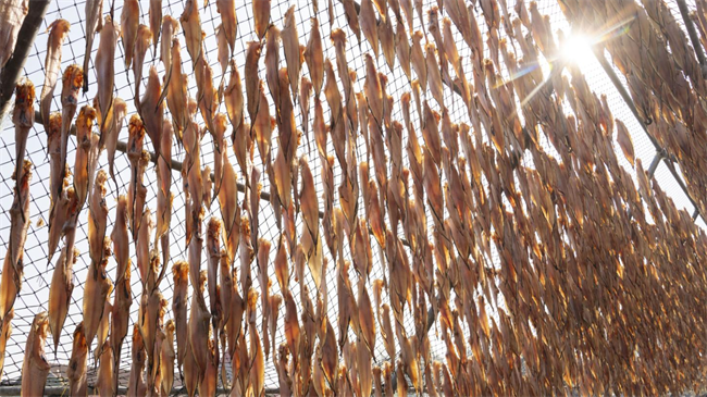 成片的鱼干描绘出产业兴旺的幸福图景。