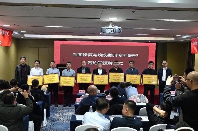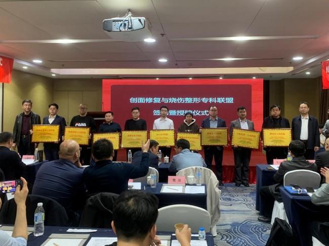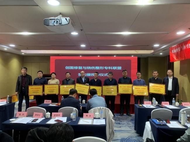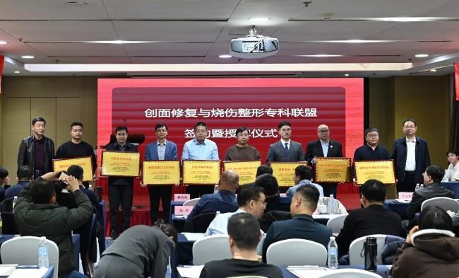 在孙振高院长的讲话之后,公共事业部蔡治国处长为来自全省的54家医院单位代表举行了隆重的授牌仪式。授牌现场气氛热烈,各成员单位代表依次上台领取牌匾,脸上洋溢着自豪与期待的笑容。此次授牌不仅是对各联盟成员单位的认可与鼓励,更标志着联盟正式进入实质运作阶段,开启了创面修复与烧伤整形领域区域协同发展的新篇章。