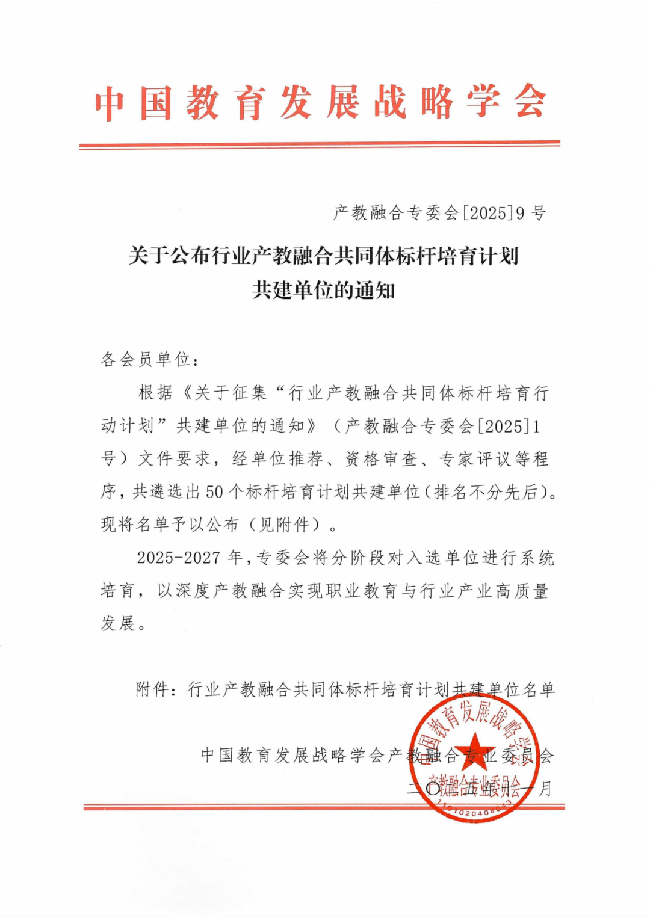 近日,中国教育发展战略学会产教融合专业委员会公布首批行业产教融合共同体标杆培育单位名单。由山东科技职业学院联合歌尔股份有限公司、山东科技大学共同牵头建设的“全国智能制造行业产教融合共同体”成功入选,成为全国50个标杆共建单位之一,标志着学校在服务国家战略、深化产教融合方面实现新突破。