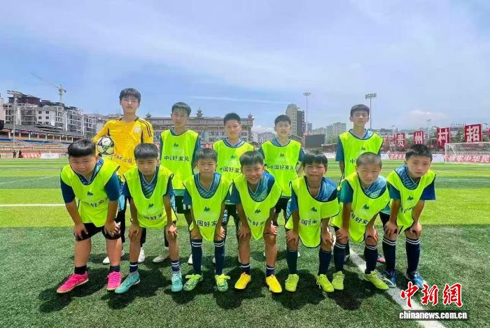“中国好家风”项目在贵州榕江举办“班超”青少年足球联赛,图为孩子们在比赛现场合影。主办方供图